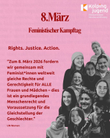 Zum 8. März 2026 fordern wir gemeinsam mit Feminist*innen weltweit gleiche Rechte und Gerechtigkeit für ALLE Frauen und Mädchen - dies ist ein grundlegendes Menschenrecht und