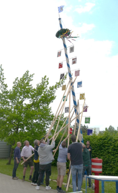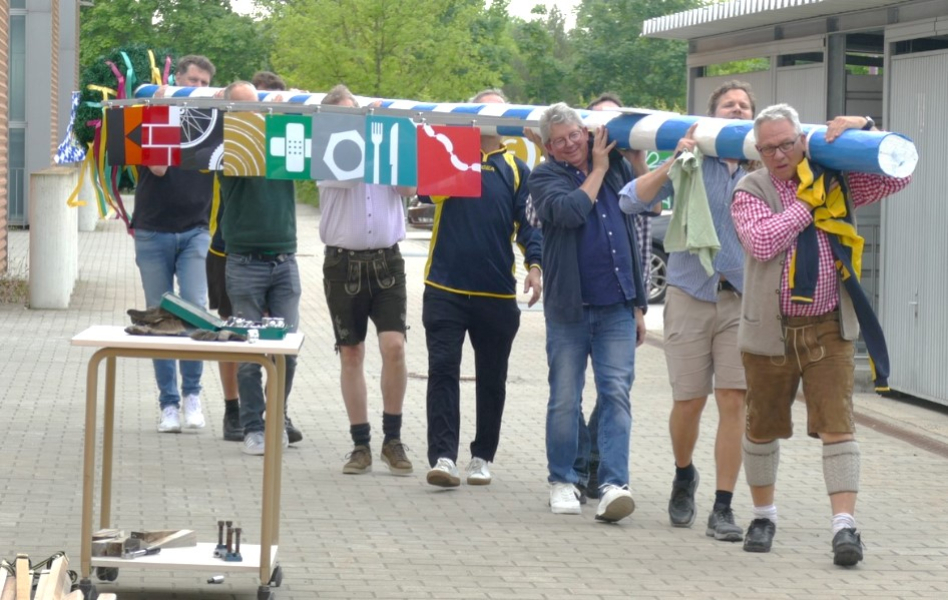 Nach dem ersten Maibaum von 2016 und dem Friedensbaum im Zeichen des Angriffskrieges gegen die Ukraine von 2022 erstrahlt nun der neue Maibaum im Pausenhof der Schule. Dieser wurde mit leichter Verspätung im Rahmen eines Schulfestes am 23. Mai feierlich aufgestellt. Ein Dutzend kräftiger Lehrer wuchteten den Baum mit den neuen Schildern unter Zuhilfenahme der traditionellen Schwalben in die gewünschte Position. Nachdem diese teambildende Erlebnispädagogik erfolgreich beendet war, eröffnete Schulleiterin Andrea Garufo das Maibaumfest 2023. Bei traumhaftem weiß-blauem Himmel genossen die anwesenden Schülerinnen und Schüler sowie Lehrkräfte die Schönheit des neuen Baumes.