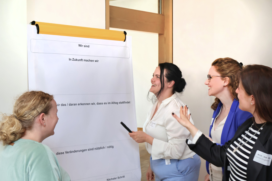 Das analytische und interaktive Großgruppenformat von Organisationspsychologin Tina Klügel stand unter der Überschrift „So bleiben wir gemeinsam besser!“. Hier beschäftigten sich die Teilnehmerinnen und Teilnehmer insbesondere mit Verbesserungen und Projekten, die sie sich für die Zukunft wünschen. Fazit: Das „Besondere“ an der Kolping Akademie ist die familienfreundliche Atmosphäre, das herzliche Miteinander und die Tätigkeit in einem gesellschaftlich relevanten Bereich, Stichwort „Sinnhaftigkeit der Arbeit.“