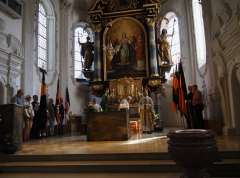 Startschuss war ein gemeinsamer Gottesdienst in der Pfarrkirche St. Margaret, die Diözesanpräses Christoph Wittmann zusammen mit dem Ortspräses Herbert Walter zelebrierte. Johannes der Täufer, dessen Fest auf diesen Samstag fiel, wäre sicher auch ein Kolpinger gewesen, hätte es den Verband damals schon gegeben. Mit seinem Verweis auf Jesus Christus und sein aktives Wirken gegen die sozialen und gesellschaftlichen Nöte der Zeit, rief er die Menschen dazu auf, sich dem Glauben zuzuwenden.