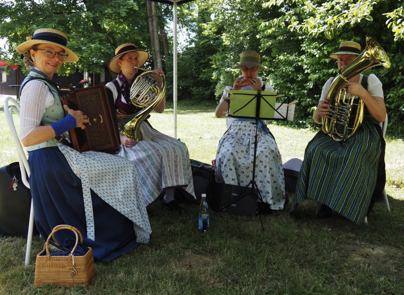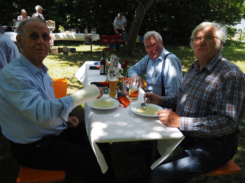 Nach dem Gottesdienst, den viele Banner der Kolpingsfamilien umrahmten, erwartete die Teilnehmerinnen und Teilnehmer ein Sektempfang im Garten des Kolpinghauses. Nach der Begrüßung durch Diözesanvorsitzenden Karlheinz Brunner und einer musikalischen Einstimmung durch die Hinum-Herum Musi aus Staudach-Egernd wurde gemeinsam zu Mittag gegessen.