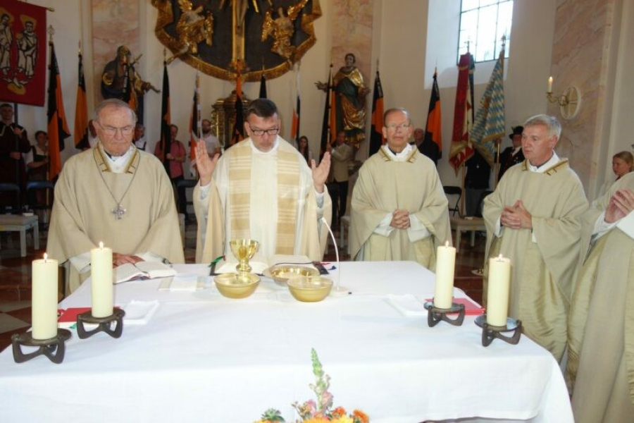Zu den Konzelebranten zählten der emeritierte Weihbischof Bernhard Haßlberger, Diözesanpräses Christoph Wittmann, Ortspfarrer Martin Straßer und sein Bruder Monsignore Wolfgang Huber.