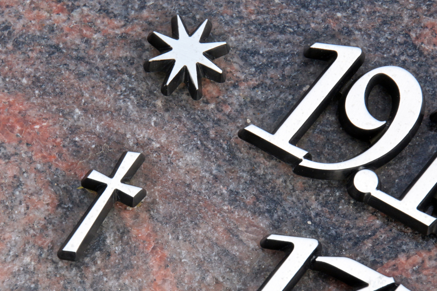 Das Kreuz vor dem zweiten Datum erinnert an den Todestag. Das Kreuz sagt uns: Hier kreuzten sich im Leben des Verstorbenen zwei Welten: Die irdische Welt hier auf Erden und die Welt bei Gott, wir sagen auch die himmlische Welt. Das Kreuz sagt uns auch: Hier feiert der Verstorbene Geburtstag, denn er wird durch den Tod in die göttliche Welt hinein geboren. Das Kreuz kann man auch als Plus-Zeichen sehen. Die ewige Welt bei Gott kommt zum irdischen Leben dazu – durch das Kreuz gibt es ein „Mehr“ an Leben. Jesus selber hat uns durch sein eigenes Kreuz den Zugang zum göttlichen Leben ermöglicht. Wir Christen dürfen glauben, dass auch wir einen Platz nach diesem irdischen Leben bei Gott finden, denn Jesus ist uns vorausgegangen, um uns den Platz zu bereiten.