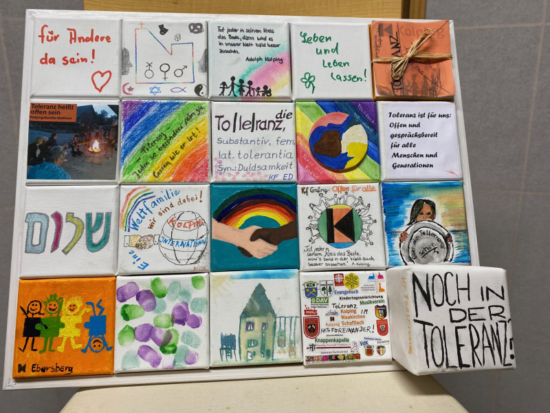 Viele von euch haben sich sicher schon gefragt: Was ist eigentlich aus den schönen Bildern geworden, die unsere Kolpingfamilien zum Thema Toleranz anlässlich der Diözesanwallfahrt 2023 nach Poing gestaltet haben?