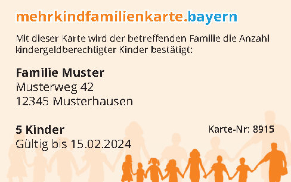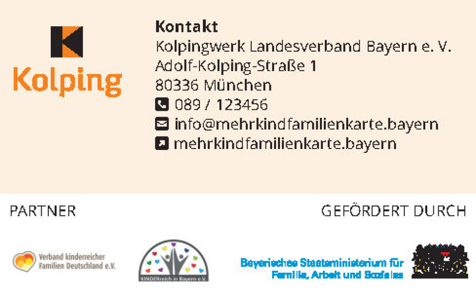 Weitere Informationen zur Karte unter der Homepage: www.mehrkindfamilienkarte.bayern