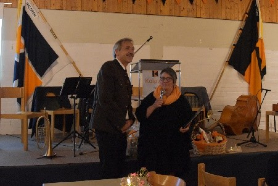 Für das leibliche Wohl der Gäste war mit einem Buffet mit kalten Speisen und Brot gesorgt, das Lothar Engel am Morgen im Holzofen der Kolpingsfamilie gebacken hatte, anschließend mit Nachspeisen und Kuchen. Zwischendurch überreichten einige Kolpingsfamilien und auch die Schützen der Stoarösl den Gastgebern Geburtstagsgeschenke.