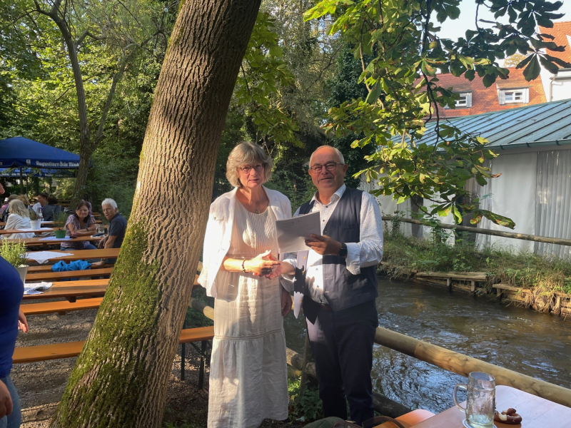 Beim anschließenden gemütlichen Beisammensein im Biergarten stellte sich der neue Diözesanvorsitzende Emil Schneider, der auch Ansprechpartner des Vorstands für die Einzelmitglieder ist, der Gruppe vor. In gemütlicher Runde konnte er dann auch Barbara Gradl für stolze 40 Jahre Kolping-Mitgliedschaft ehren.