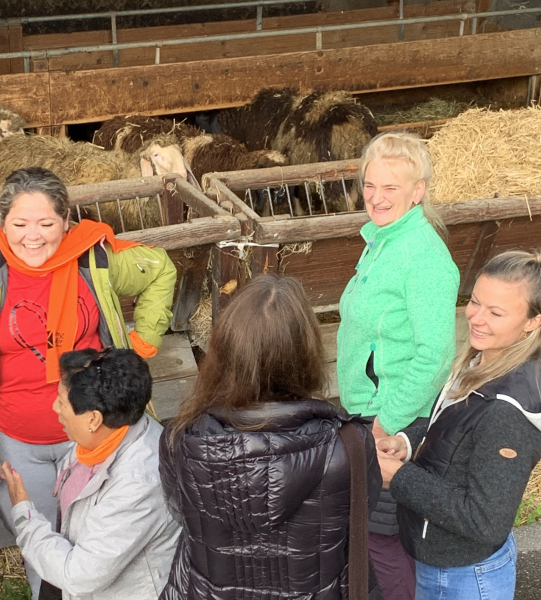 Weiter gings über Kloster Schlehdorf, den Kochel- und Walchensee zum Hofladen „Zum Scheib“ in Klais. Dem Familienbetrieb gehört eine Schäferei mit rund 120 Mutterschafen sowie der Hofladen mit Metzgerei an, durch welche Frau Maurer die Gäste führte. Der Tag klang im Landgasthof „Sonnenhof" bei einer Brotzeit und guten Gesprächen aus.