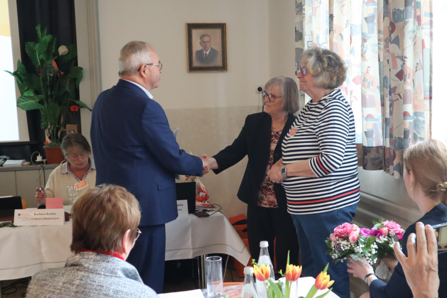 Bei den anschließenden Wahlen wurde Diözesan- und Landespräses Christoph Wittmann in seinem Amt bestätigt. Barbara Purschke, bisher Mitglied im Vorstand, wurde zur stellvertretenden Vorsitzenden gewählt. Neu in den Vorstand gewählt wurde Martina Hohl von der Kolpingsfamilie Poing. Diözesanvorsitzender Emil Schneider gratulierte allen Gewählten herzlich und dankte für ihre Bereitschaft, Verantwortung zu übernehmen und den Verband mitzugestalten. Anschließend verabschiedete er zwei langjährige Vorstandsmitglieder: Margot Sibbers und Barbara Trampler kandidierten nach jeweils sechs Jahren im Vorstand nicht erneut. Emil Schneider würdigte ihr Engagement, ihre Erfahrung und ihre Beiträge, die sie über die Jahre hinweg in die Arbeit des Diözesanvorstands eingebracht haben.