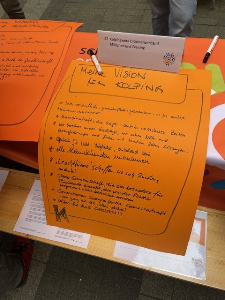 Am Stand dabei waren die stellvertretenden Diözesanvorsitzende Barbara Purschke, Diözesanreferentin Marion Martin und Diözesanpräses Christoph Wittmann. Die Rückmeldungen der Besucherinnen und Besucher waren zahlreich, individuell – und oft tief berührend. Manche entdeckten beim spontanen Gespräch, wie sehr sie Kolping mit persönlichen Lebensentscheidungen verbinden. Andere nutzten die Gelegenheit, Kritik, Wünsche oder Hoffnungen zu formulieren.