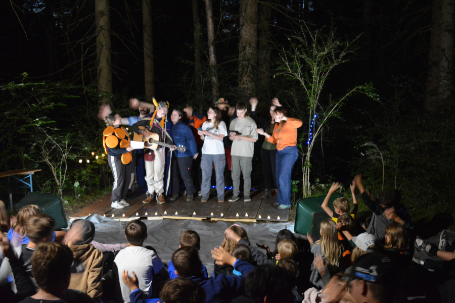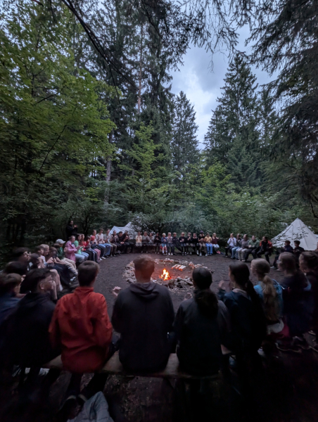 Der Zeltplatz mitten im Wald, mit einem Fluss in der Nähe, bot die perfekte Kulisse für eine Woche voller Abenteuer und Naturerfahrung. Die Kinder lebten in Zelten, gaben ihren Gruppen eigene Namen und entwickelten eine individuelle Identität innerhalb des Dorfes. Gleichzeitig wuchs das Gemeinschaftsgefühl durch gemeinsame Mahlzeiten, thematisch gestaltete Spiele und tägliche Rituale wie Morgen- und Abendlob. Diese spirituellen Impulse halfen dabei, den Tag bewusst zu beginnen und abzuschließen.