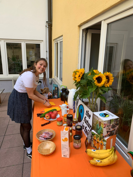 Am Samstag, den 13. September duftete es früh morgens um 8.00 schon wohlig warm nach Kaffee im Innenhof* des Kolpinghauses am Stachus. Alles wurde vorbereitet für ein faires Frühstück.