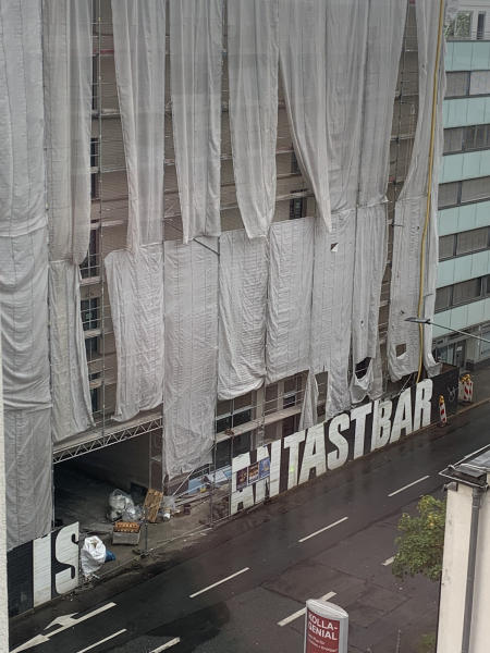 Beim Bundestreffen der Geistlichen Leitungen und Präsides in Frankfurt prangt gegenüber des Kolpinghotels am Bauzaun des Nachbarhauses in großen Buchstaben der Schriftzug: „Die Würde des Menschen ist unantastbar“. An einer Stelle ist der Bauzaun derzeit unterbrochen und macht eine Lücke frei, so dass übrigbleibt: „Die Würde des Menschen is antastbar“.