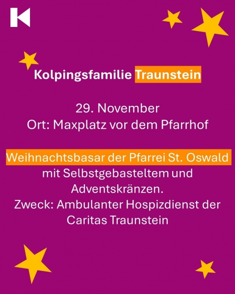 Mit Beginn der Advents- und Weihnachtszeit entsteht in vielen Kolpingsfamilien und Bezirken eine besondere Atmosphäre: Überall wird geplant, gebacken, gebastelt und verkauft – auf Christkindlmärkten, in Gemeinden oder bei regionalen Aktionen.