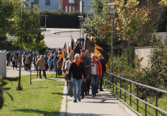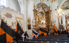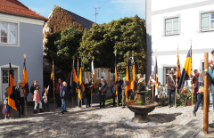 „Bei Kaiserwetter“ bedankte sich Diözesanvorsitzender Emil Schneider bei den über 100 Kolpinggeschwistern, die zur Diözesanwallfahrt nach Altomünster aufgebrochen waren. Ein langer Bannerzug führte von der S-Bahn-Station zur Kirche „St. Alto und Birgitta".