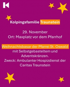 Mit Beginn der Advents- und Weihnachtszeit entsteht in vielen Kolpingsfamilien und Bezirken eine besondere Atmosphäre: Überall wird geplant, gebacken, gebastelt und verkauft – auf Christkindlmärkten, in Gemeinden oder bei regionalen Aktionen.