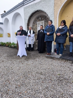 Zur Einweihungsfeier des neuen Sternenkindergrabes begrüßte Vorsitzende der Kolpingsfamilie Tittmoning Barbara Danninger die zahlreich interessierten Gäste. Neben Bürgermeister Andreas Bratzdrum hieß sie Altbürgermeister Konrad Schupfner willkommen, mit welchem bereits die ersten Planungsgespräche im Jahr 2019 stattgefunden hatten. Unter die Gäste mischte sich weiterhin Friedhofsverwalterin Michaela Brüderl, zahlreiche Stadträte und Bruder Thomas Hessler OSB vom Kloster Gut Aich, welcher den künstlerischen Entwurf für das Sternenkindergrab konzipierte.