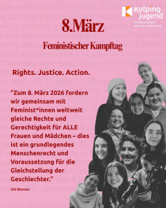 Zum 8. März 2026 fordern wir gemeinsam mit Feminist*innen weltweit gleiche Rechte und Gerechtigkeit für ALLE Frauen und Mädchen - dies ist ein grundlegendes Menschenrecht und Voraussetzung für die Gleichstellung der Geschlechter.