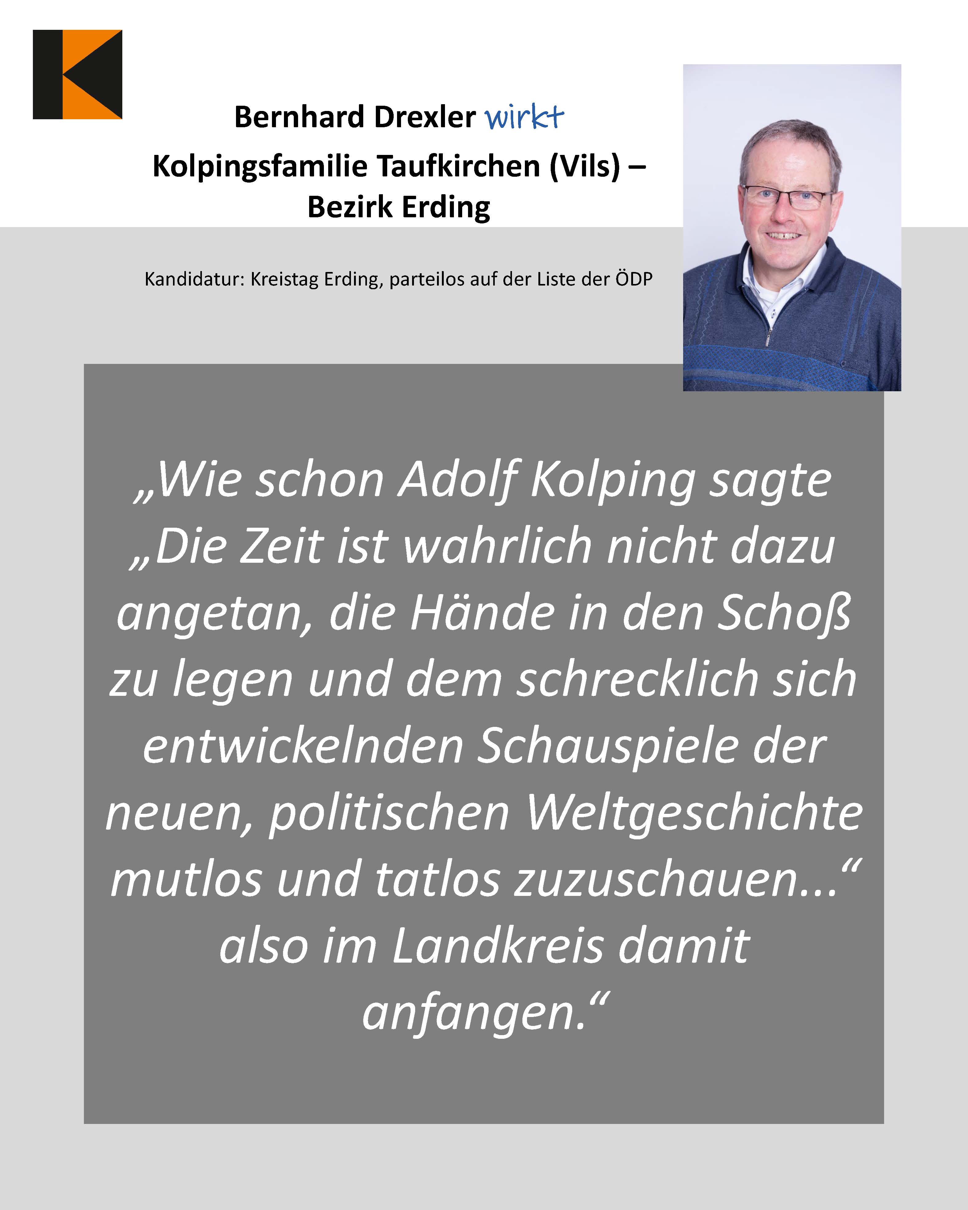 - Bernhard Drexler, Kolpingsfamilie Taufkirchen (Vils) –Bezirk Erding